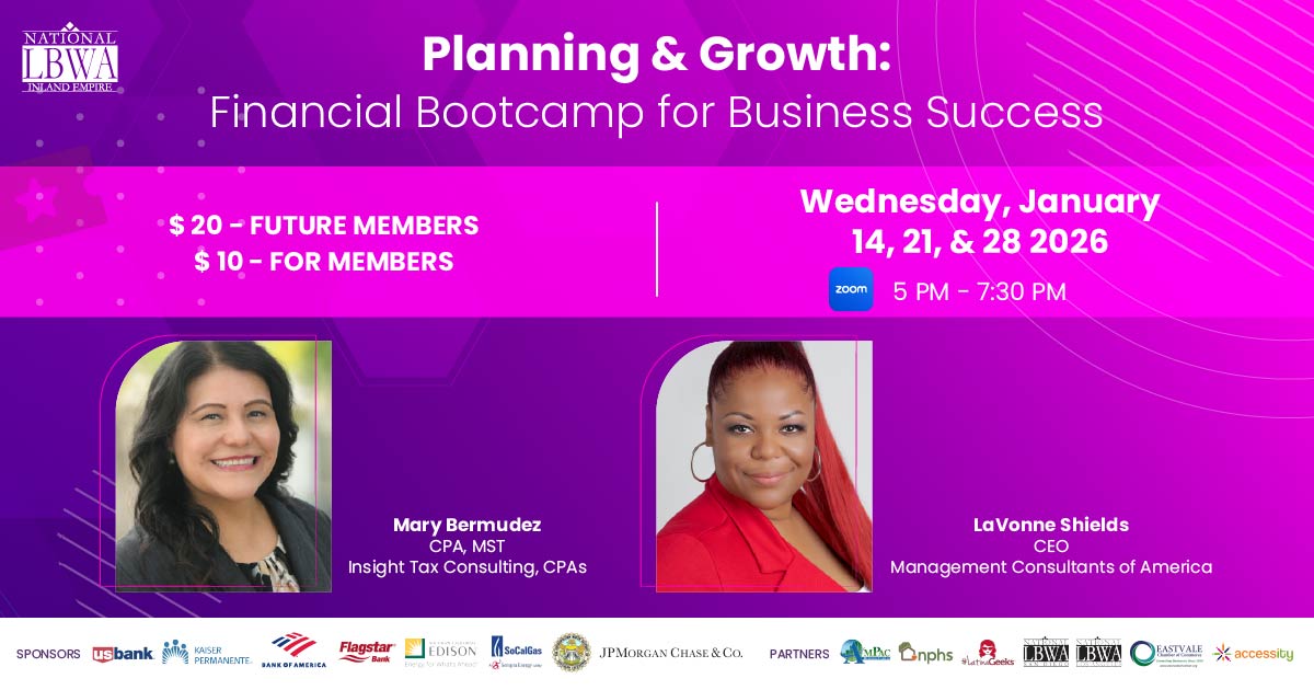 Are you interested in sponsoring a future workshop event or webinar? Please contact Maria M. Solano at mmsolano@nlbwa-ie.org